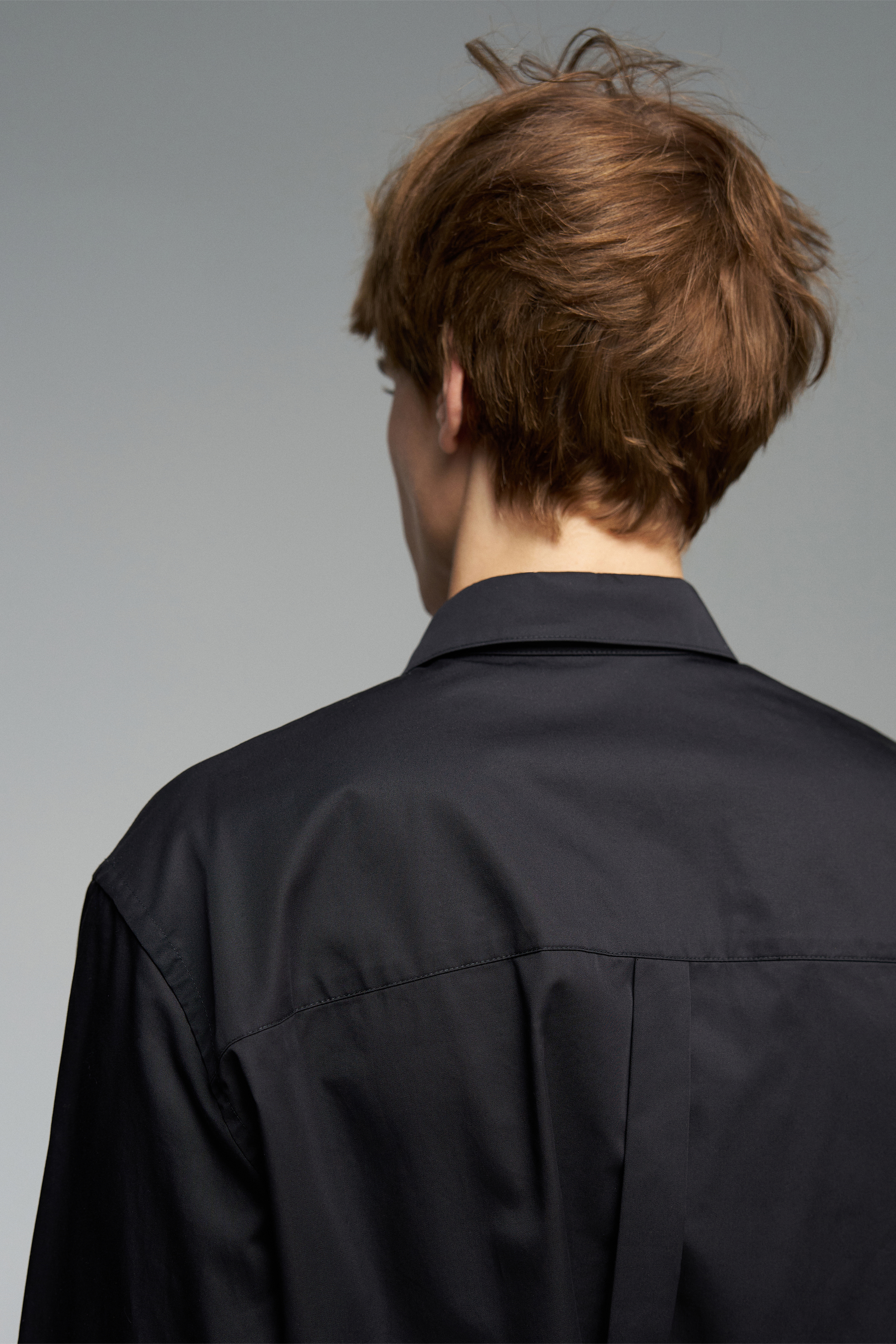 Рубашка черного цвета на пуговицах. Со спущенной линией плеч, манжетах на пуговицах и классическим воротником. Рубашка с вышивкой бренда в тон изделия.