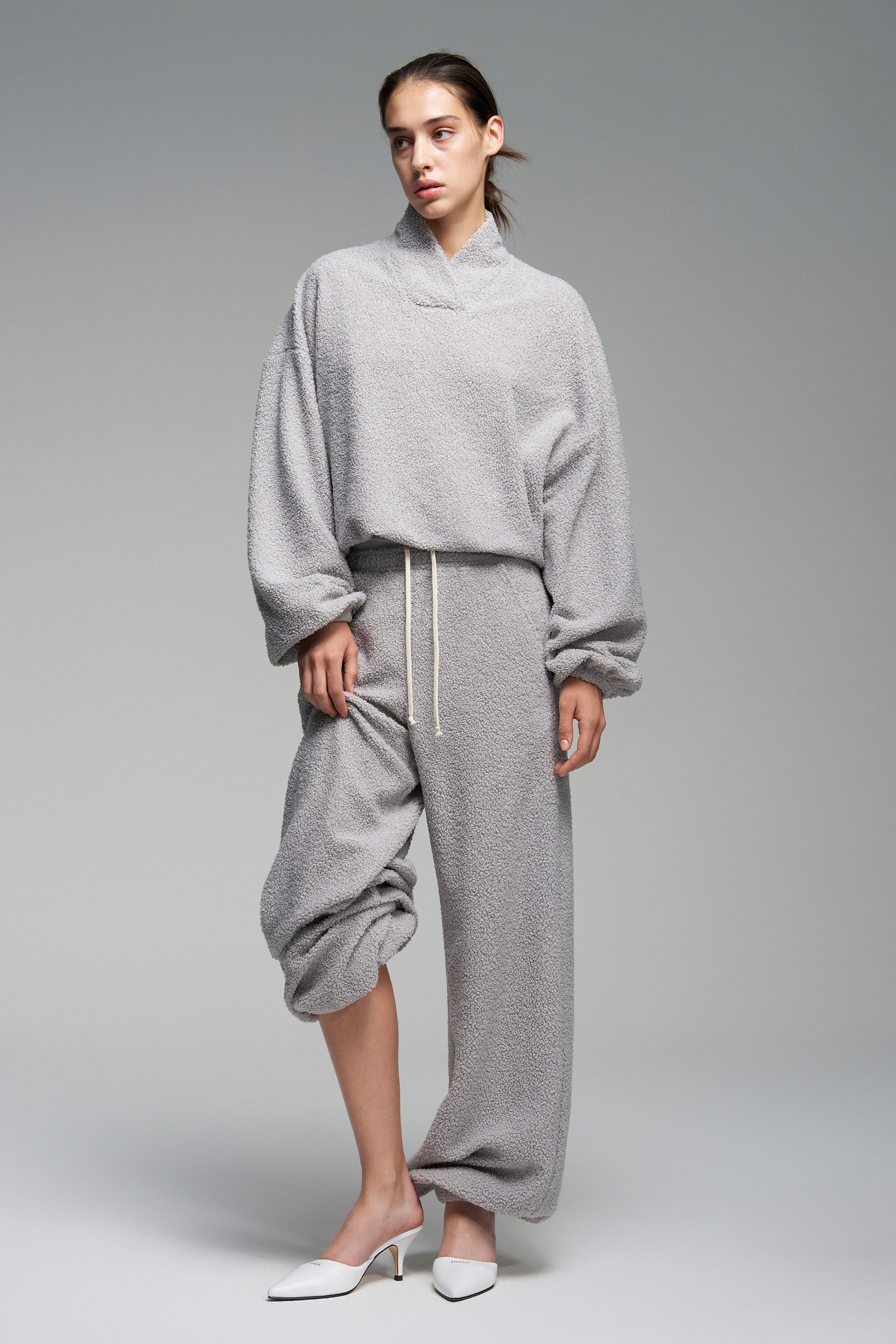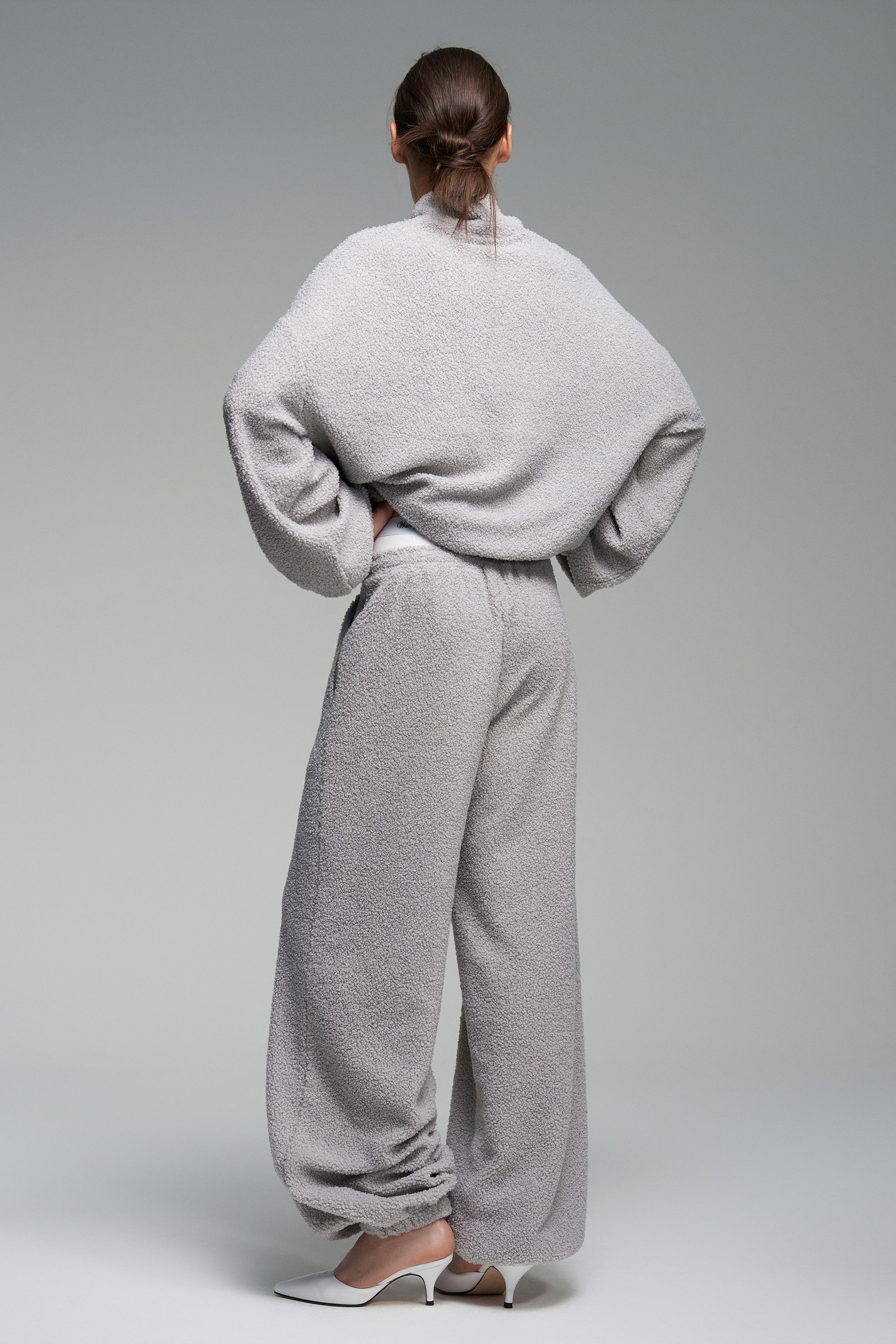 Джоггеры Mouton серого оттенка из мягкого материала. Эластичный пояс обеспечивает комфортную посадку, по бокам — врезные карманы. Низ штанин собран на резинку.