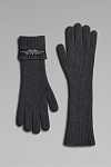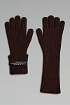 Длинные вязаные перчатки выполнены из мягкой пряжи с добавлением гипоаллергенной шерсти ангоры и мериноса — они тёплые, деликатные к коже и комфортные в носке. Длина до локтя позволяет носить их как полностью расправленными и заправленными под верхнюю одежду, так и в присборенном виде. Обе перчатки украшены репсовой лентой с логотипом бренда, а с изнанки дополнены жаккардовым лейблом, который при желании можно снять.