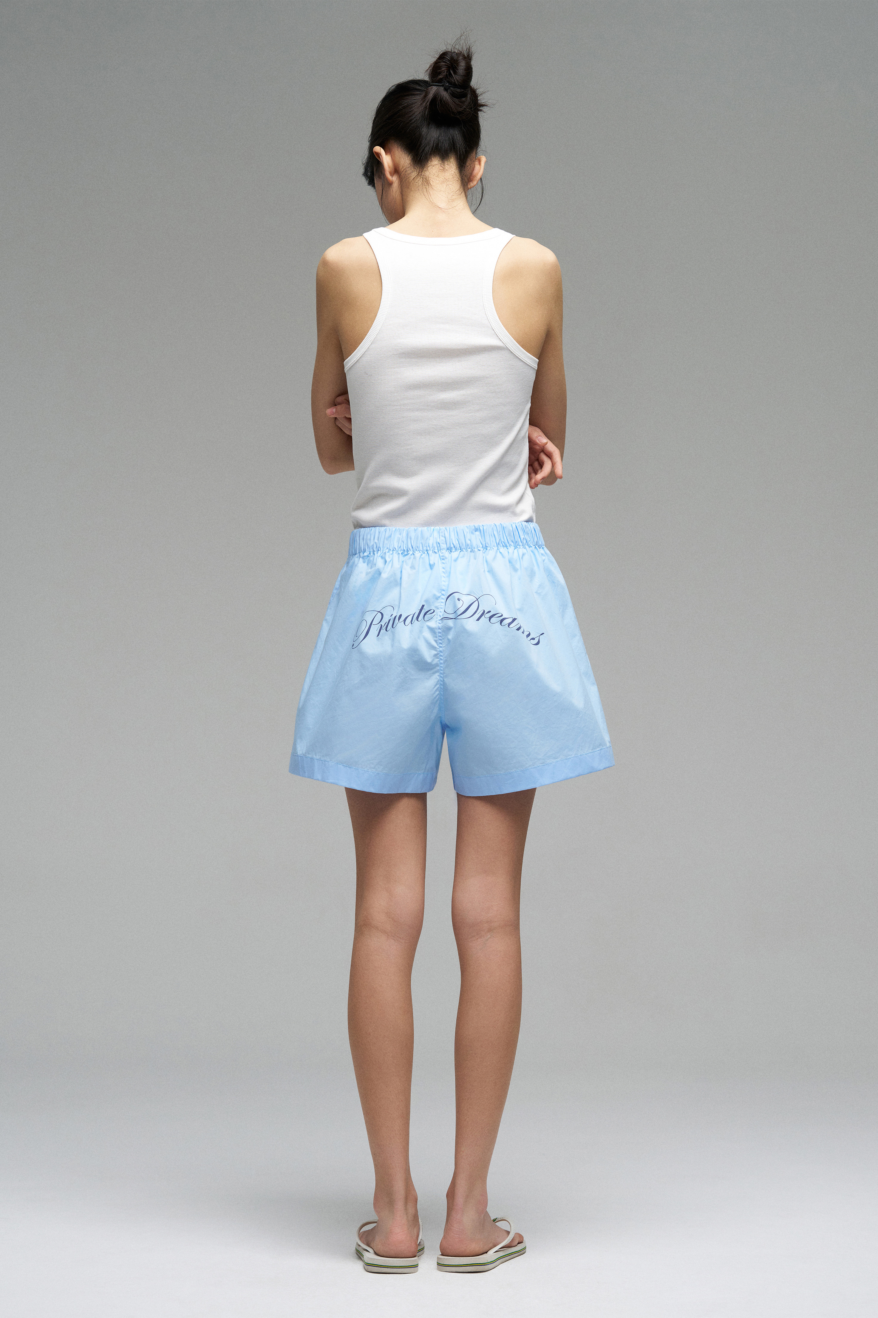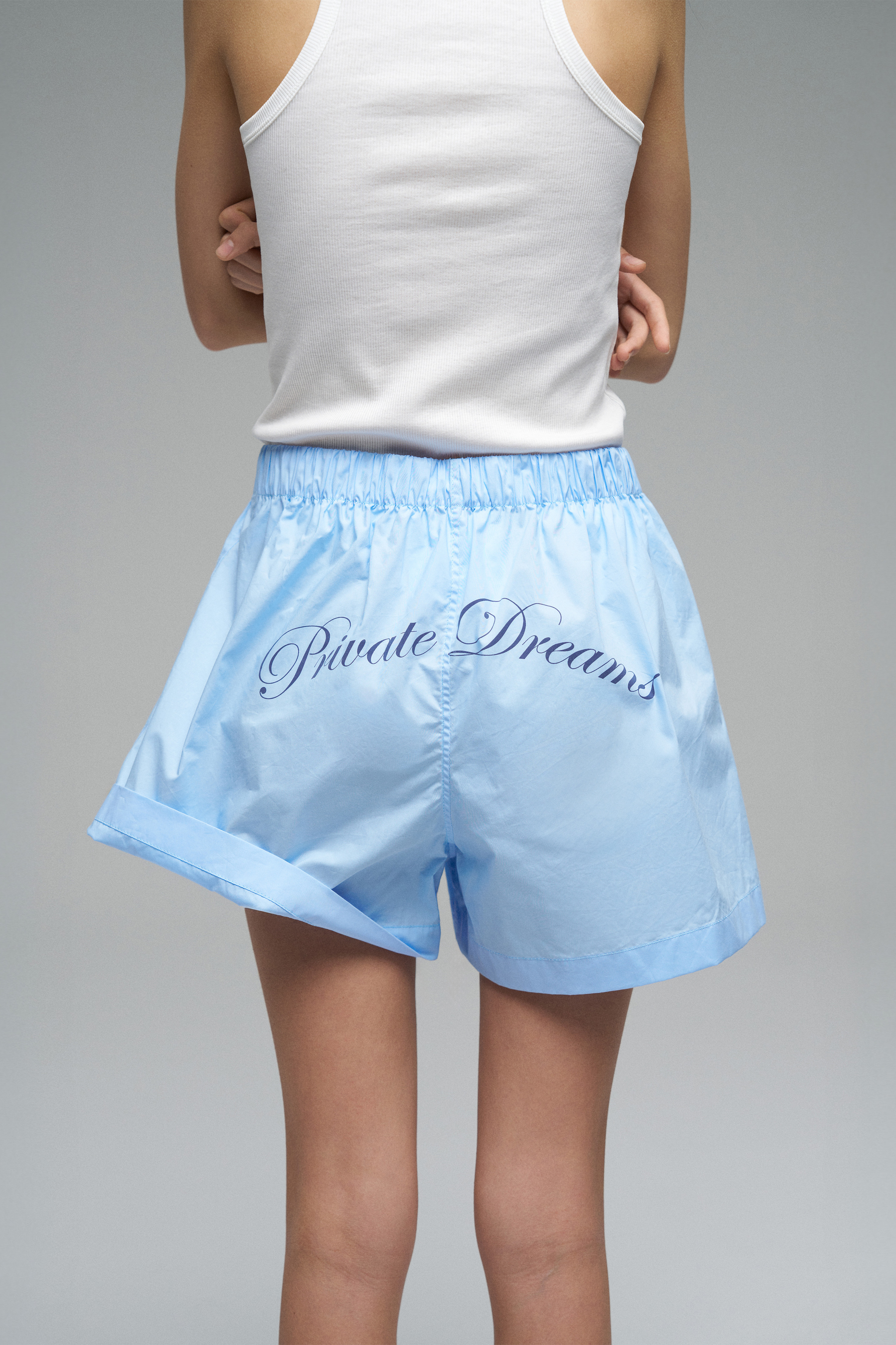 Пижамные шорты из мягкой и приятной к телу хлопковой ткани. Модель с регулируемым поясом и шелкографией «Private Dreams» на задней части.