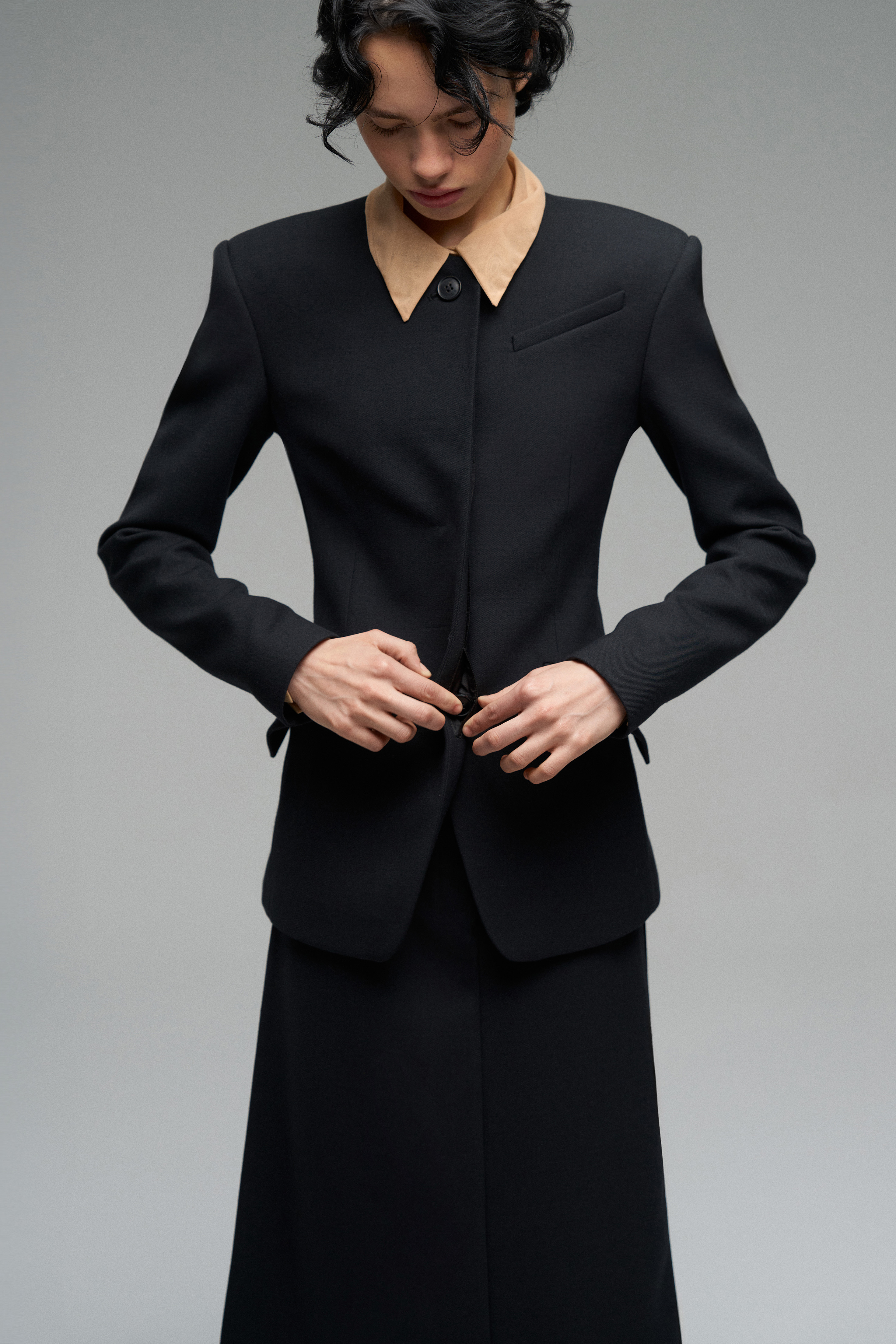 Материал: основная ткань — 100% шерсть, подкладка — 52% полиэстер, 48% вискоза,