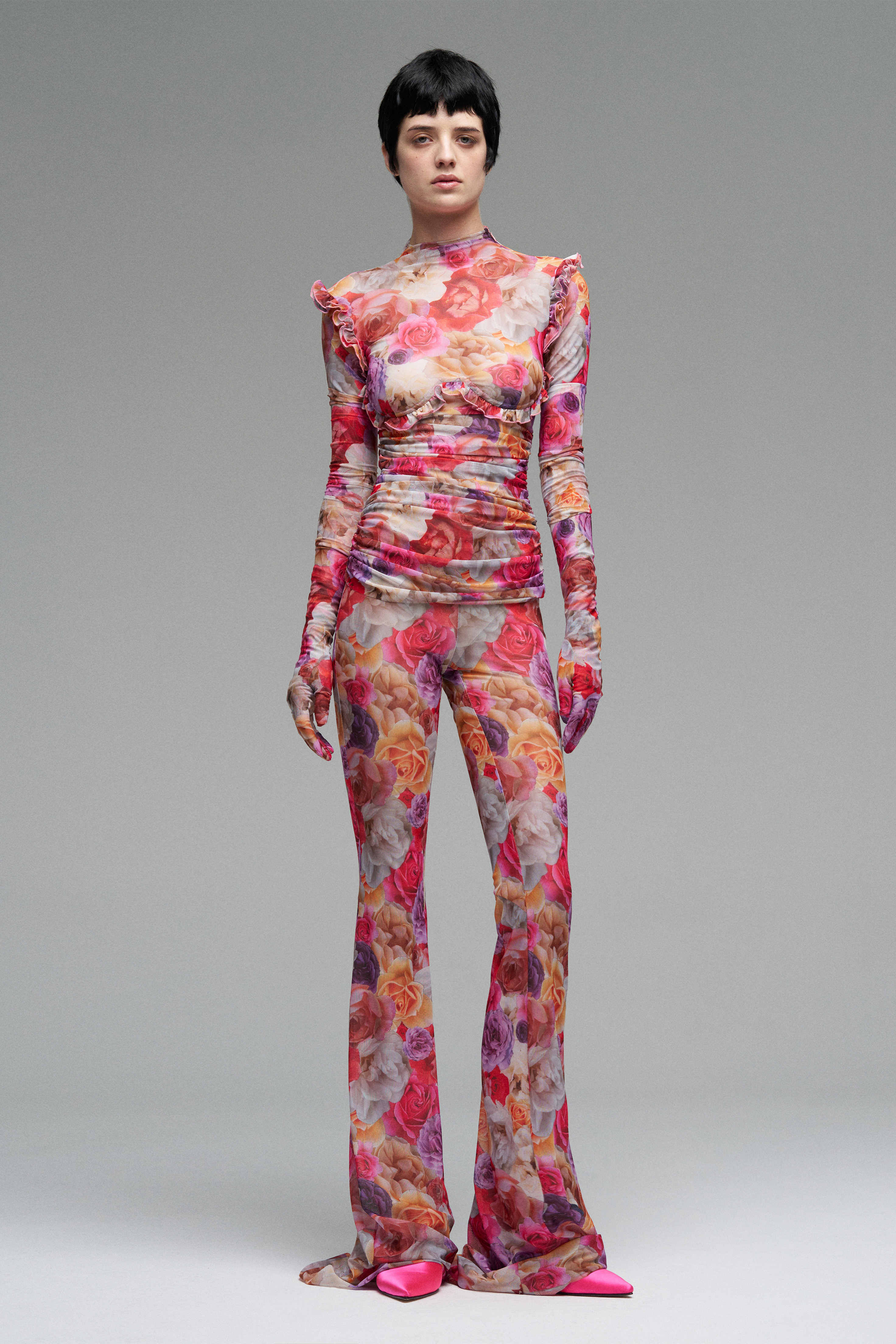 Длинные перчатки из эластичной ткани с плотным прилеганием по всей длине руки. Мягкий материал обеспечивает комфортную посадку и свободу движений. Принт розы.