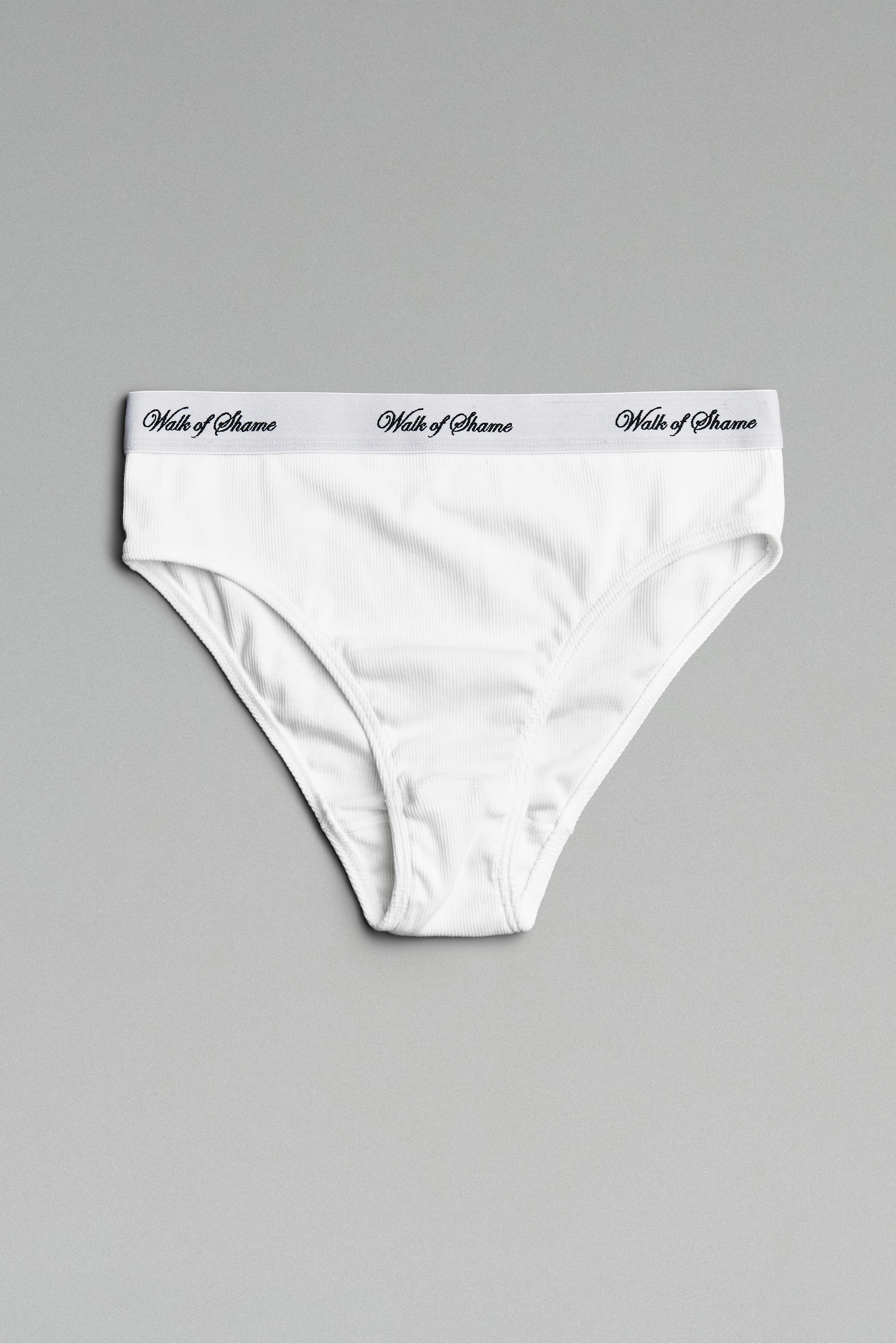 Трусы — брифы в белом цвете, украшенные жаккардовой резинкой с логотипом. Белье продается в коробке, стилизованной под винтажную видеокассету JVC.