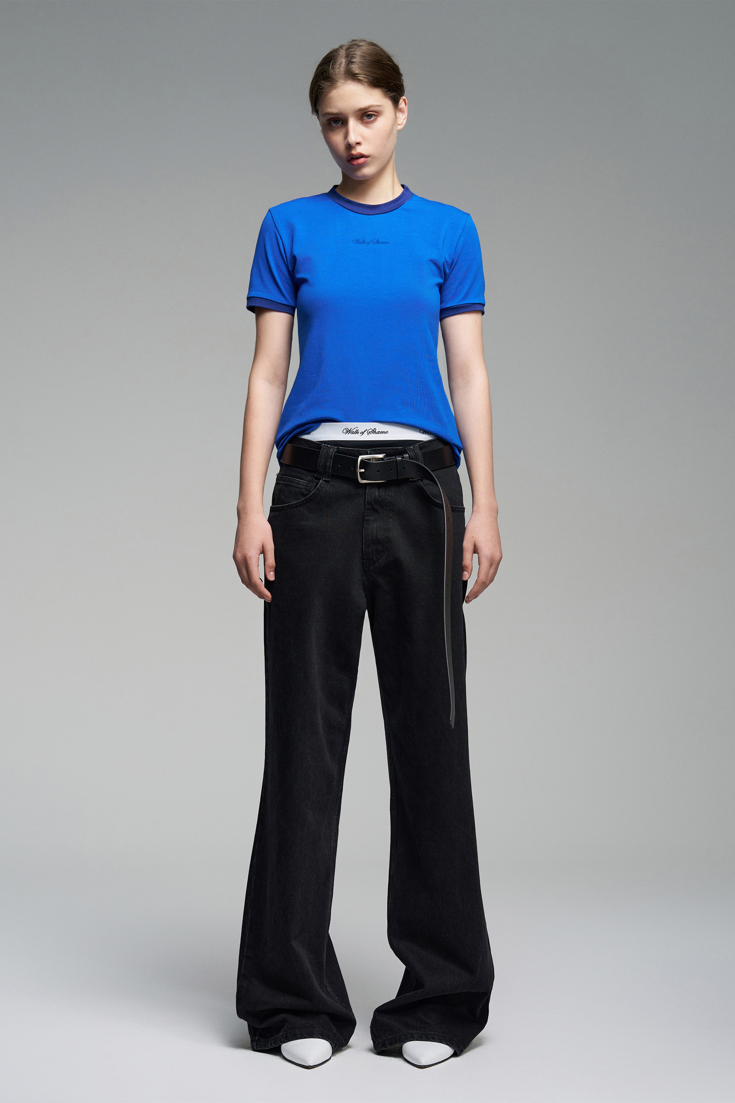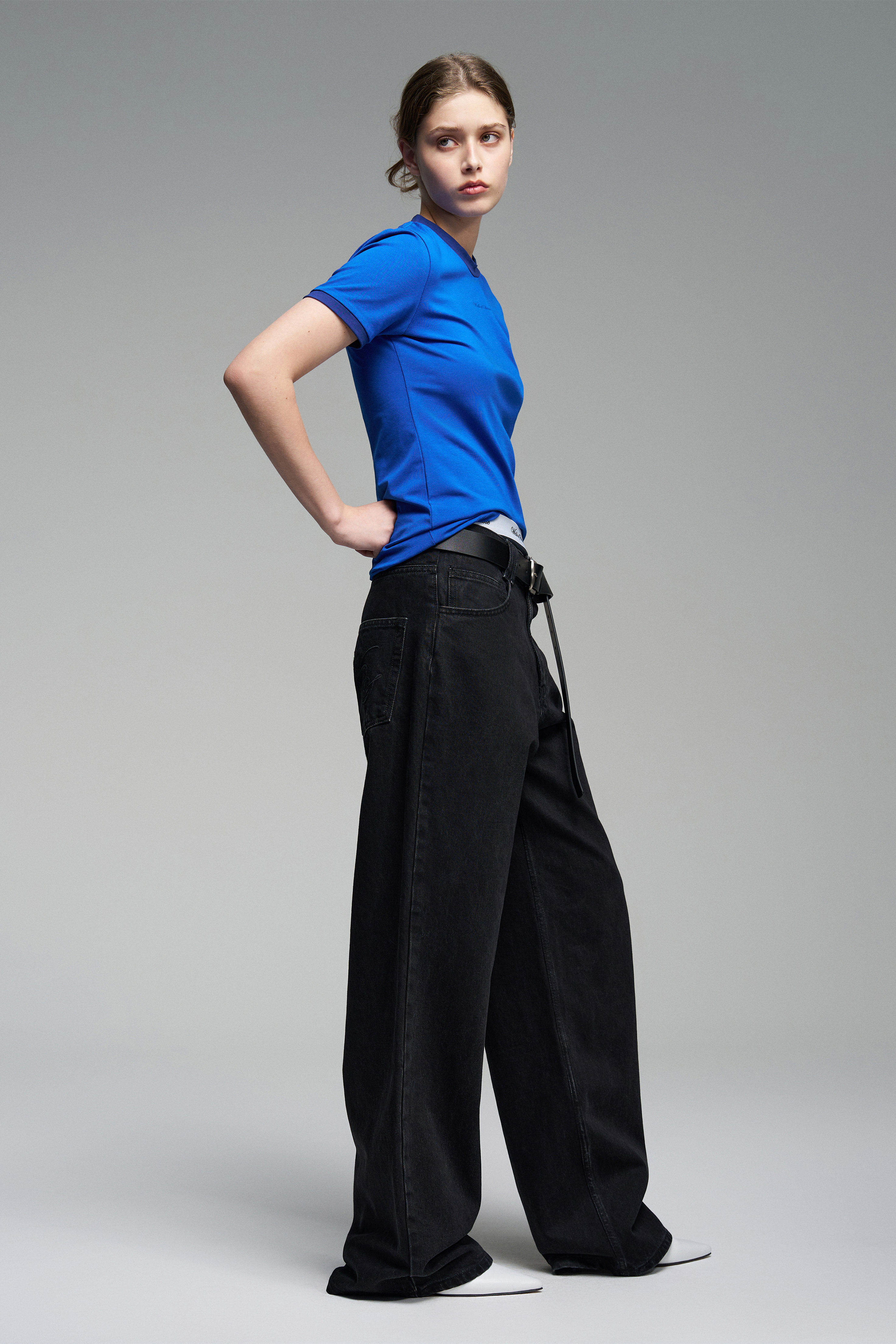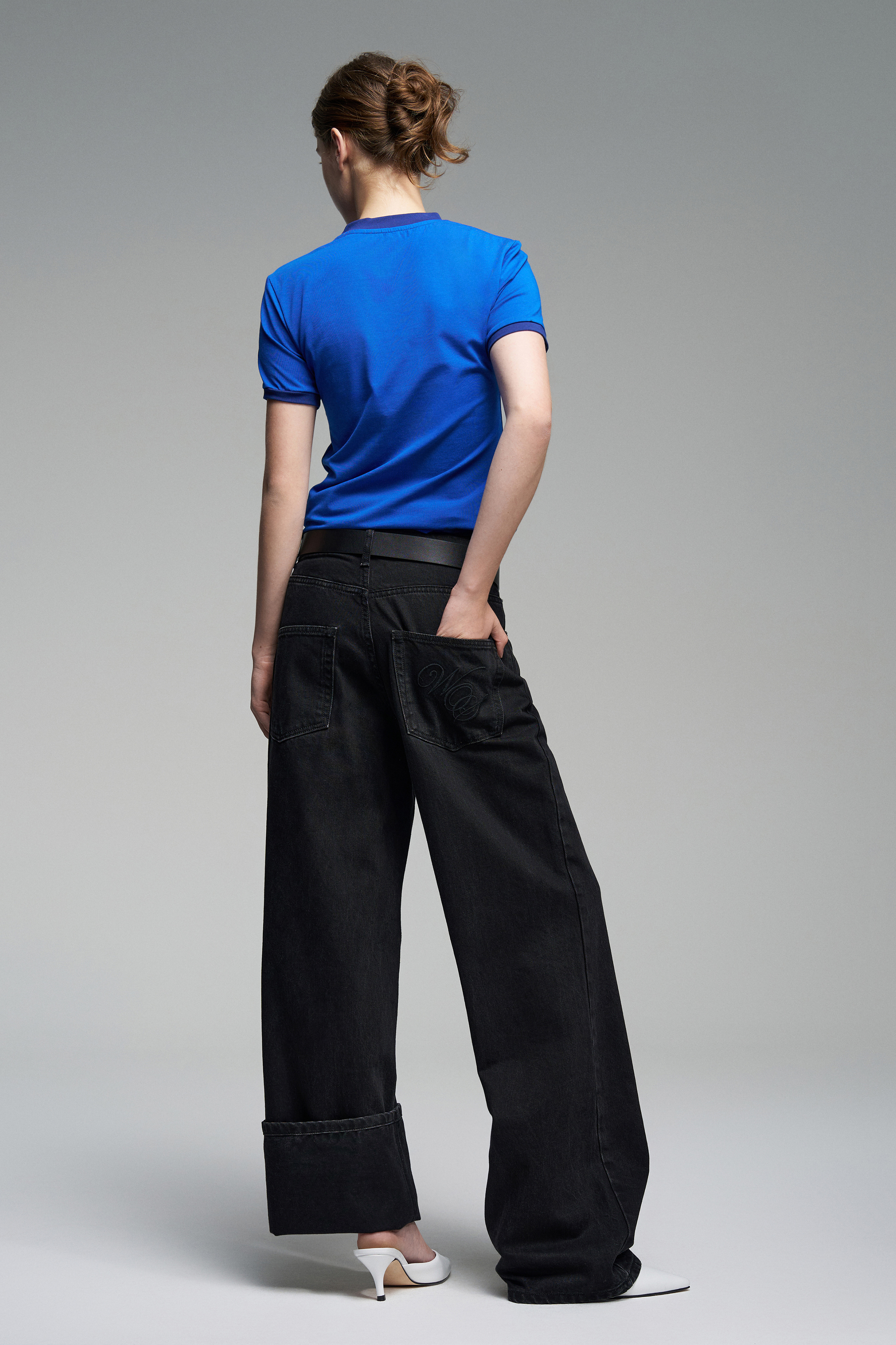 Джинсы на средней посадке изготовлены из плотного денима ручного окрашивания. Декорированы вензелем украшающим накладной карман изделия.
