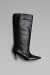 Высокие сапоги до колена с широким голенищем. Модель без застёжки, на передней части расположен принт.