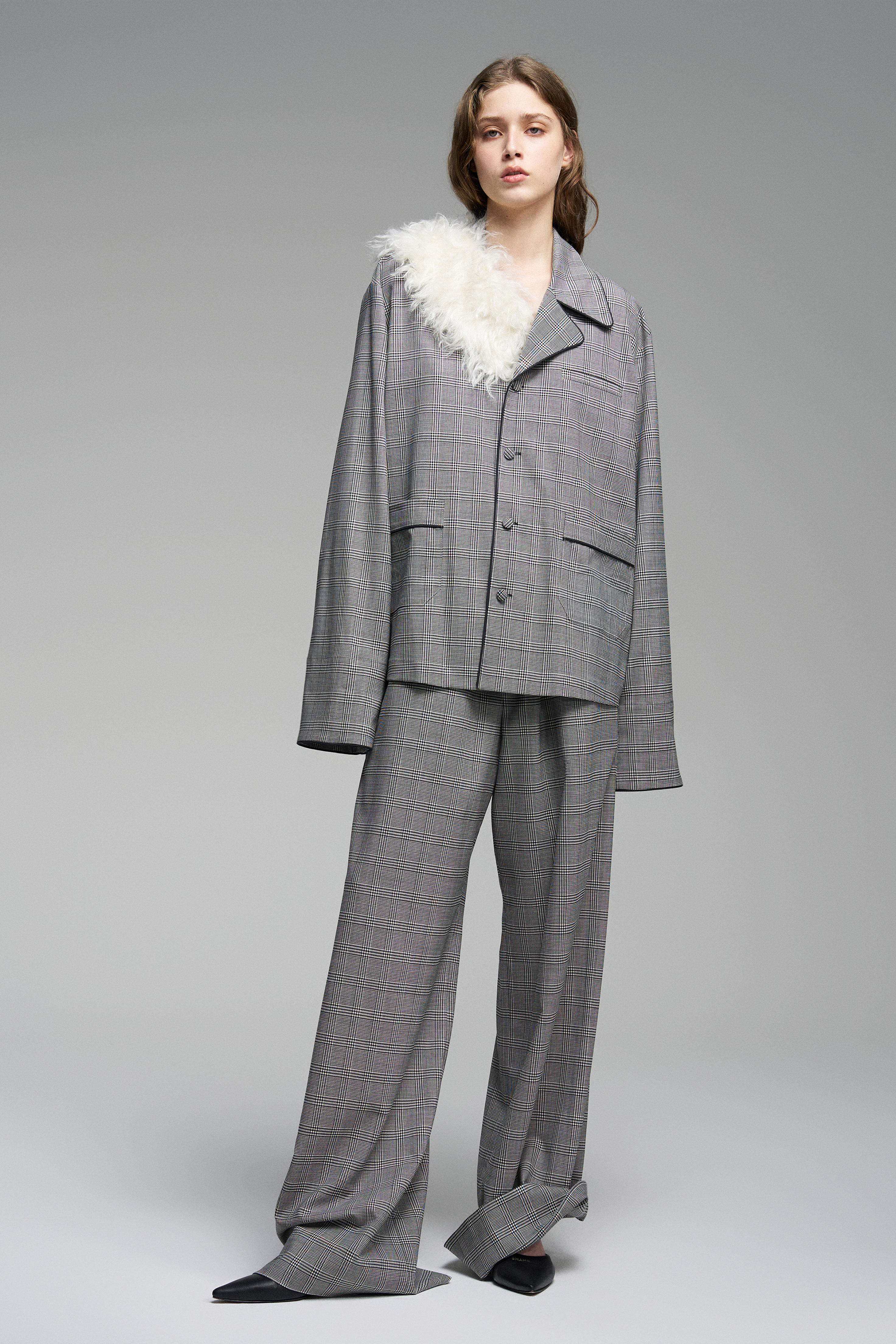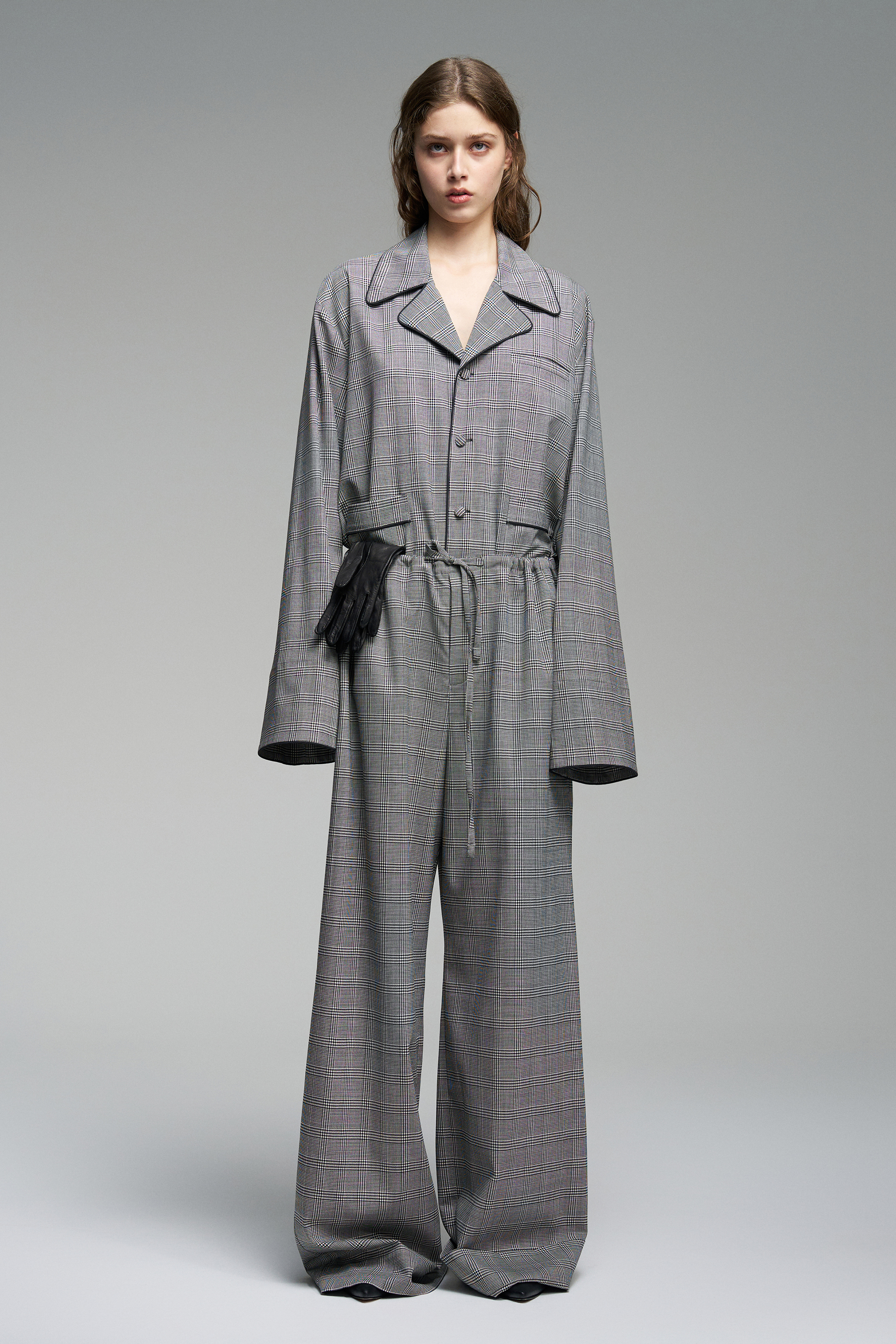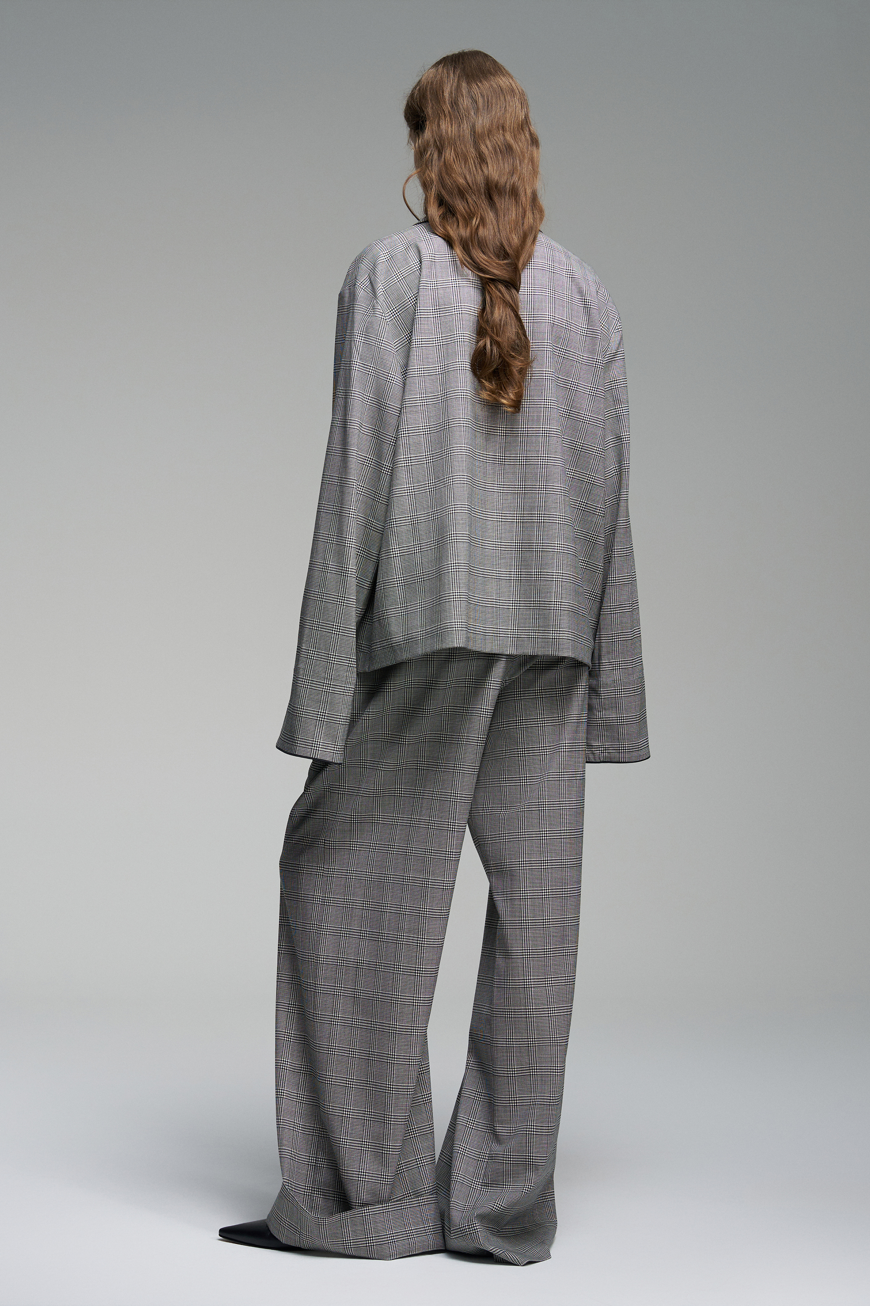 Пижамные брюки из тонкой шерсти в клетку. Пояс на шнурке позволяет регулировать посадку. По бокам расположены карманы.