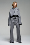 Рубашка прямого кроя с двойным рядом шлёвок. Скрытая застёжка на пуговицы. На спинке — репсовая лента с логотипом бренда.